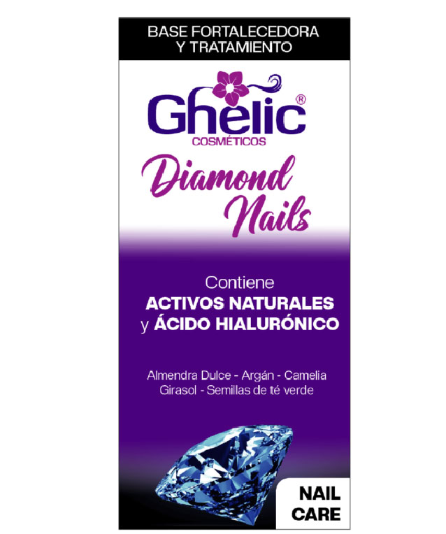 Esmalte de secado al aire marca Colombiana Ghelic tono Base Diamond Nails 12 ml